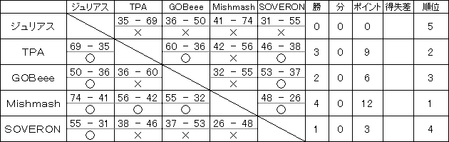 【2017/12/9修正】ambition対switchの試合結果を修正、それにより順位等も変動