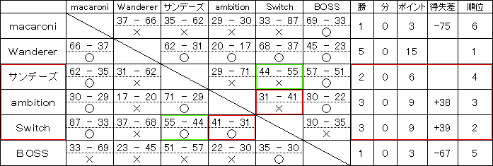 【2017/12/13修正】サンデーズ対switchの試合結果を修正、それにより順位等も変動